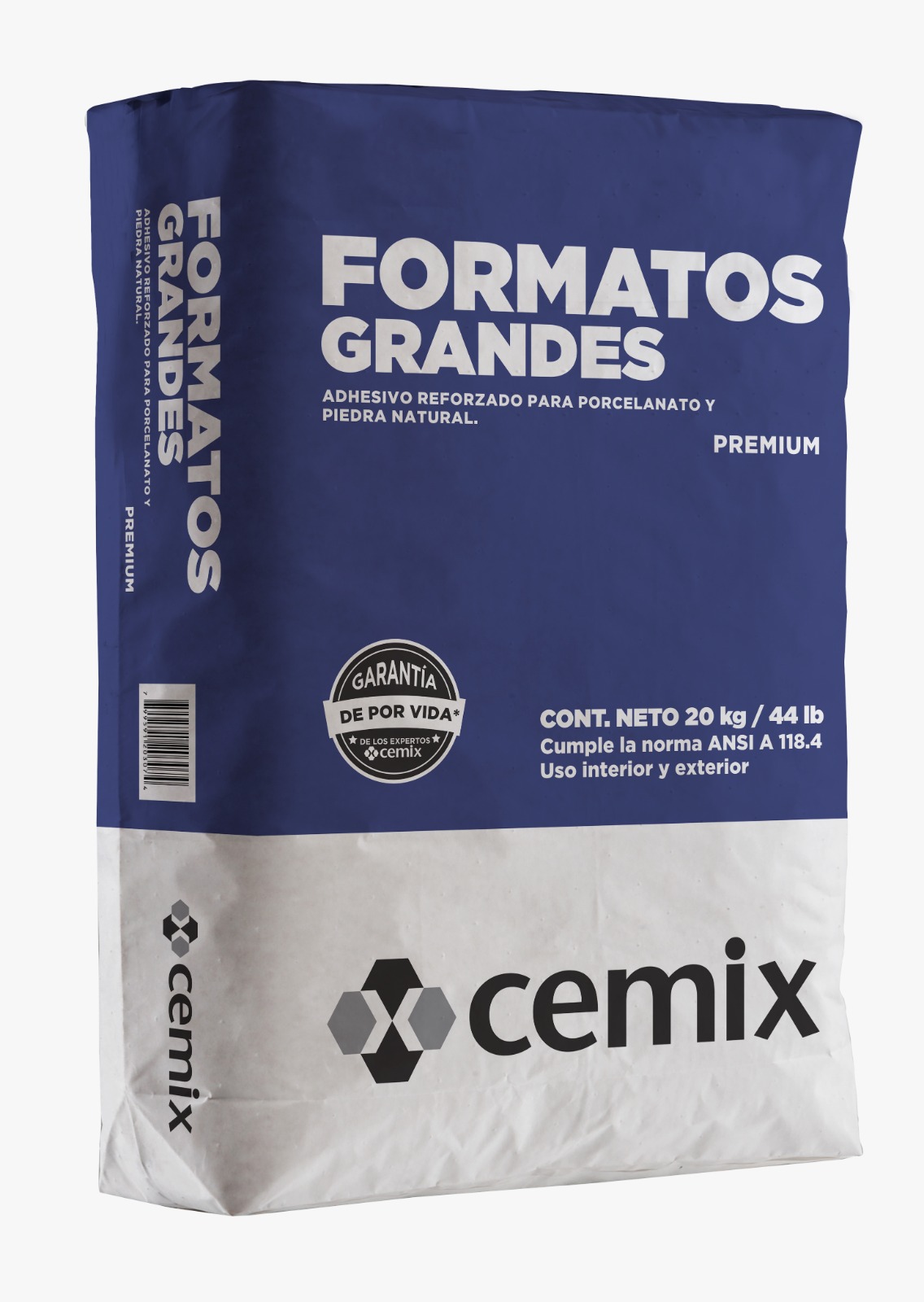 Cotizar Ficha Técnica Adhesivo en polvo base cemento Portland blanco reforzado con aditivos especiales para instalar los nuevos formatos grandes y pesados de pisos y azulejos cerámicos o recubrimientos pétreos de alta, media y baja absorción.