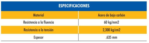 Suele tener un diámetro entre 6.35 milímetros, y por lo regular está en una presentación enrollada de bobinas de 100 kg.
