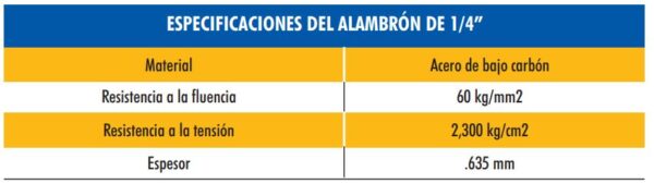 Los estribos o anillos para construcción están fabricados con alambrón de ¼ el cual cumple con la norma mexicana NMX-B-365-CANACERO-2008 y ASTM-A-510 exigida en los reglamentos de construcción del país.