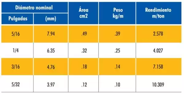 | Unidad de Venta | Kg. (Longitud 6 mt) |