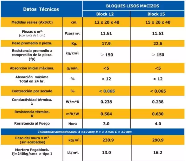 El block macizo se utiliza principalmente para hacer muros y muretes de mampostería, bardas perimetrales o de colindancia. El block macizo tiene una resistencia promedio a compresión por pieza de 150 kg/cm2