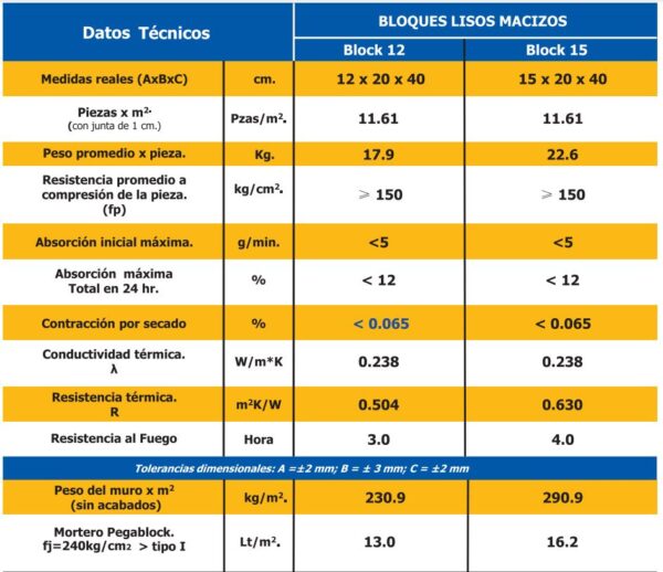 El block macizo es una pieza hecha de concreto para uso estructural de forma rectangular de con las caras lisas, que se produce de utilizando unos moldes que después se vibrocompactan, se curan con inyección de vapor por lo que la contracción es muy baja y mantiene uniformidad en su apariencia.